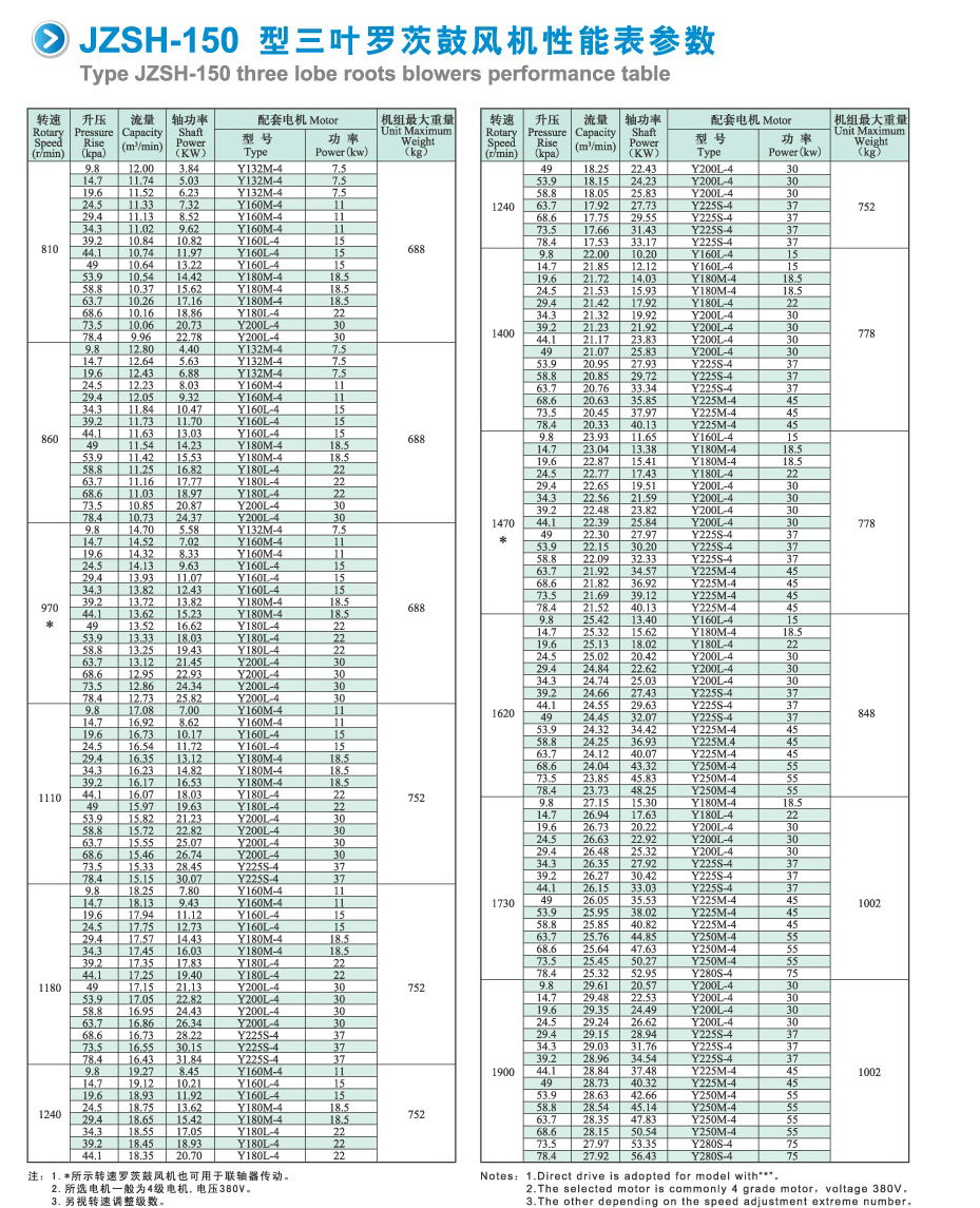 2.JZSH系列風機標準附屬品:電機、進口消音器、出口消音器,風機底座、彈性接頭、安全閥、逆止閥、壓力表、地腳螺栓、風口連接螺絲,風機帶輪、電機帶輪、V型三角帶、皮帶罩、羅茨風機專用油(已注好)。