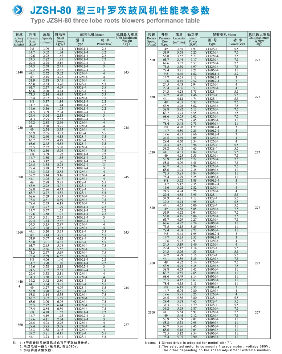 升壓:9.8--6.13kpa 電機功率:2.2--11 KW